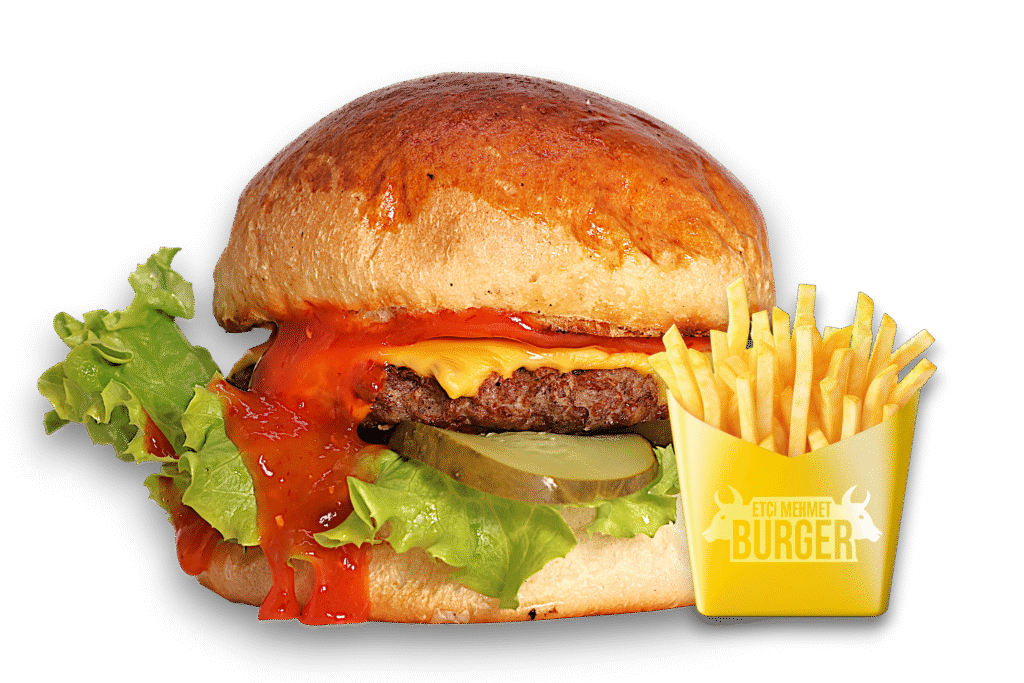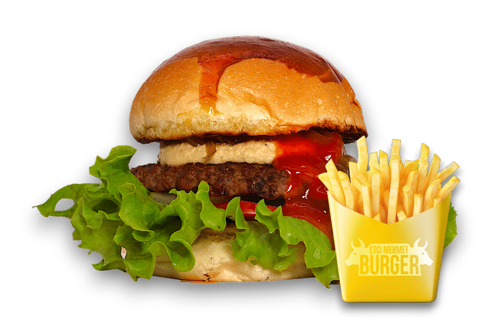 Vejeteryan Burger İçindekiler:Özel vegan köfte, cheddar peyniri, karamelize soğan, turşu, yeşillik, burger sosu ve baharatlı patates kızartması ile. Fiyat:100gr 280₺