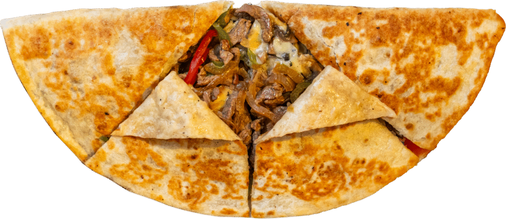 Etli Quesedilla İçindekiler:30 cm Tortilla Lavaşına Kontrafile Et , Kapya Biber,Çarliston Biber, Kuru Soğan Mantar,Mozarella Peyniri ve Patates Kızartması. Fiyat:459₺