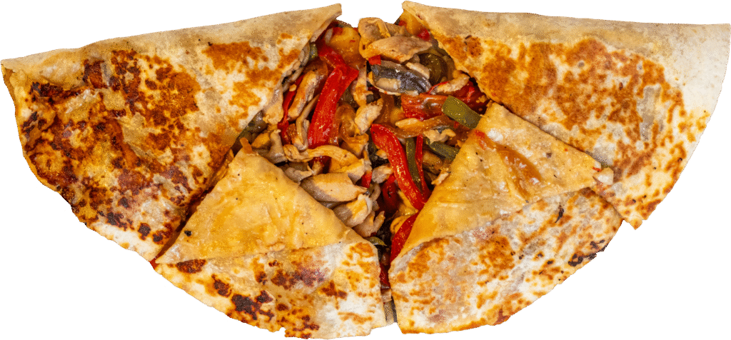 Tavuklu Quesedilla İçindekiler:30 cm Tortilla Lavaşına Izgara, Tavuk, Kapya Biber,Çarliston Biber,Kuru Soğan Mantar,Mozarella Peyniri ve Patates Kızartması İle. Fiyat:349₺