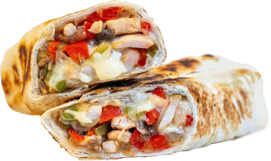 Tavuk Wrap İçindekiler:30 cm Tortilla Lavaşına Izgara Tavuk, Kapya Biber,Çarliston Biber,Kuru Soğan, Mantar,Mozarella Peyniri ve Patates Kızartması İle Fiyat:349₺